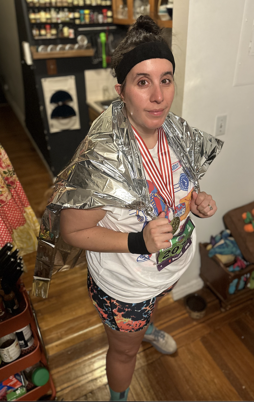 But here’s the thing. And I will not deny having said this, in fact, I want you to hold me accountable and throw these words in my face should I ever contest them: I want to run the New York City Marathon, and I am going to take my time getting there. I am going to train, and rest, and recover, and strengthen, and rebuild, and eat, and lead myself with kindness and empathy and grace. I am going to run those 26+ miles with love inside of and for myself. And then I think there will not be enough nachos in the world to satiate me. There will not be a brownie decadent enough for I will have reached god level, and you better believe they will give me a medal on that day. But for today? I’m a content little potato, my dudes. Content and proud. I did what I came to do. On my terms. And I didn’t quit.