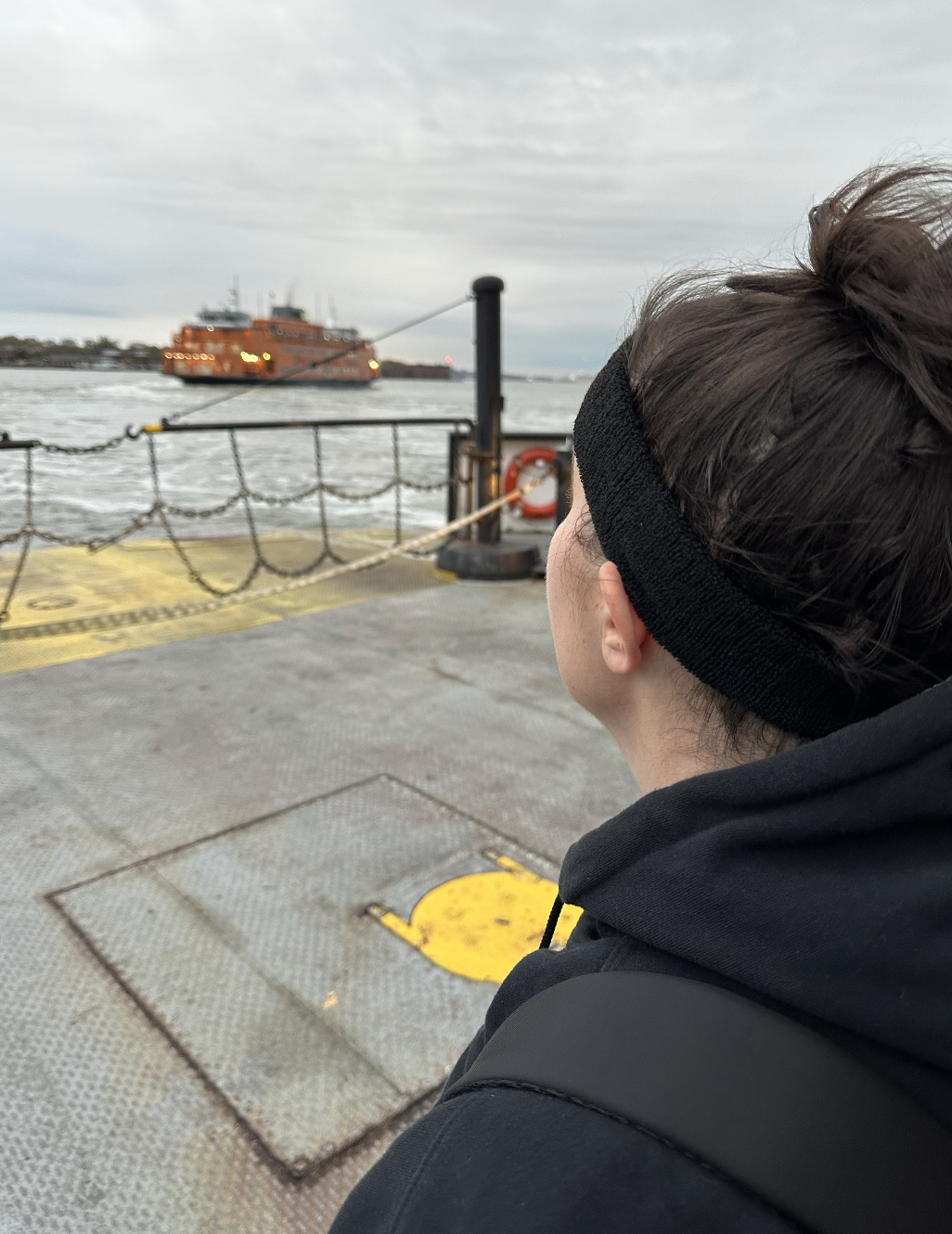 Our journey began on the ferry after a short, albeit chilly, wait in line before boarding. The vibe was excited but not overly so. There were a lot of running clubs, which is something that I think is actually pretty common for these types of things. And also a lot of like, colleges and high school runners as well. You know what it felt like, it felt like the vibe of taking a PSAT. Like for most of these people, this race is important, but not the thing. Not like it is for me. And that’s fine. Honestly, it makes a certain sense because the big mama marathon is next week and I feel like a lot of people have been using this past week to gear up for that. So for many of the people there, this was just like, business as usual.