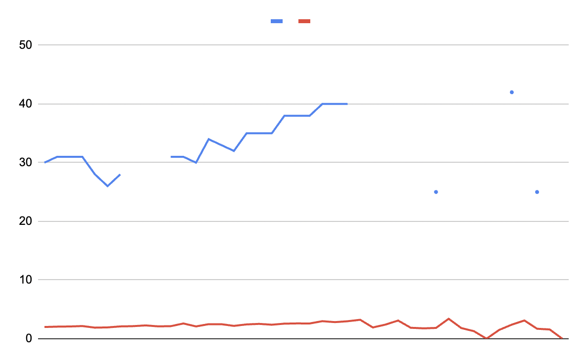 I have a list of all the times and distances and thought it would be fun to put it into a chart, but since I have a BFA in musical theater and I zoned out during our math for life course at PU, I don’t think I did it right, but here are some charts of my progress.